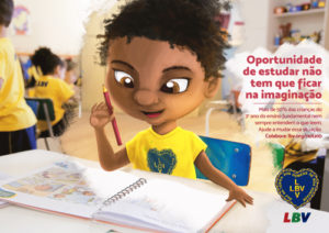 Em suporte a todas essas ações, a LBV realiza, anualmente, a campanha Criança Nota 10 — Proteger a infância é acreditar no futuro!, que, em 2018, entregará mais de 22 mil kits de materiais escolar e