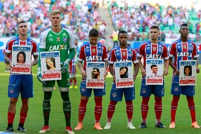 As pessoas nos 11 cartazes exibidos, com foto e telefone, por cada jogador durante a execução do Hino Nacional, tiveram Boletim de Ocorrência registrado na DPP, coordenada pela delegada titular Heloísa Simões.