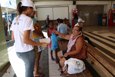 distribuiu material informativo para a população, ocorreu na feira de São Joaquim, no bairro da Calçada, em Salvador.