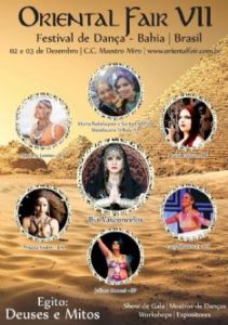 A sétima edição do Oriental Fair: Festival de Dança Bahia/ Brasil, acontece neste sábado, 2, no Centro de Cultura Amélio Amorim, às 20h. É um espetáculo de dança oriental no qual alunos se apresentam com bailarinos profissionais convidados, de vários Estados do Brasil. O Show é temático e todo o cenário, figurino, músicas e coreografias estão relacionados a ‘’Egito: Deuses e Mitos’’.