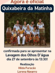 A tradicional festa popular Lavagem dos Olhos D’Água chega à sua terceira edição e promete atrair um grande público no dia 27 de setembro, um sábado, a partir das 13h30, na Rua Dr. Araújo Pinho, no bairro Olhos D’Água, em Feira de Santana. Este ano, o evento contará com a participação especial da Quixabeira da Matinha, grupo de referência na cultura popular, o que tem gerado expectativa de recorde de público.