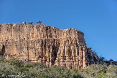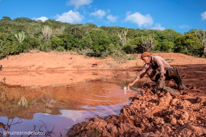 “Como estava vestindo minhas roupas camufladas, logo fui confundido com os fiscais dos órgãos ambientais, o que gerou desconforto. Para quebrar a desconfiança, fui ao carro e peguei meu livro ‘Chapada Diamantina, Um Paraíso Desconhecido’. Abri na página com a foto dos vaqueiros da Gruta dos Brejões. Esse momento foi registrado pelo amigo e grande fotógrafo Sergio Cedras”, conta Rui Rezende.
