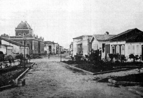 Praça da Catedral (Matriz) e o prédio da então Escola Normal de Feira de Santana, anos 1930, atual Centro Universitário de Cultura e Arte (Cuca). Imagem: domínio público
