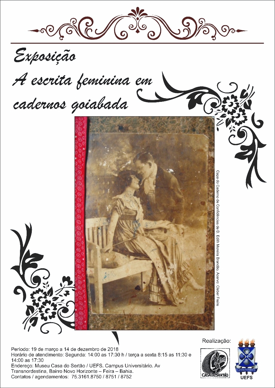 Os cadernos em exposição formam os acervos privados de Luiz Cleber Moraes Freire, com doze exemplares, Nilzete Barbosa de Oliveira, com três, e um do acervo da Biblioteca Setorial Monsenhor Galvão. A exposição fica em cartaz até o dia 14 de dezembro, na Sala do Couro Eurico Alves Boaventura. Contatos pelo telefone (75) 3161-8750 ou e-mail [email protected].